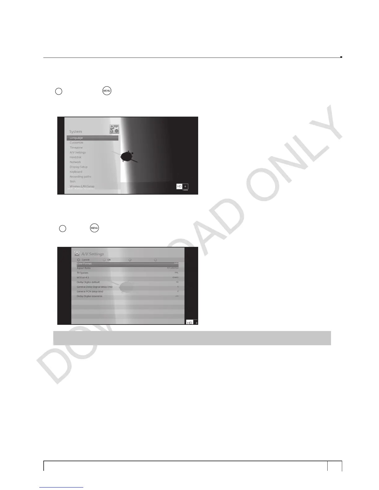 > Setup > System > A/V Settings]