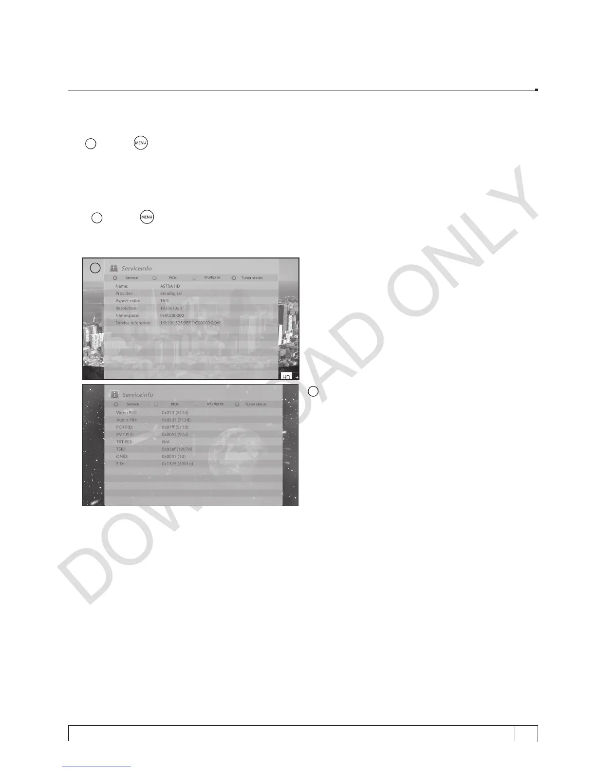 In this menu, you can see all the parameter data of the current channel. The service information is well