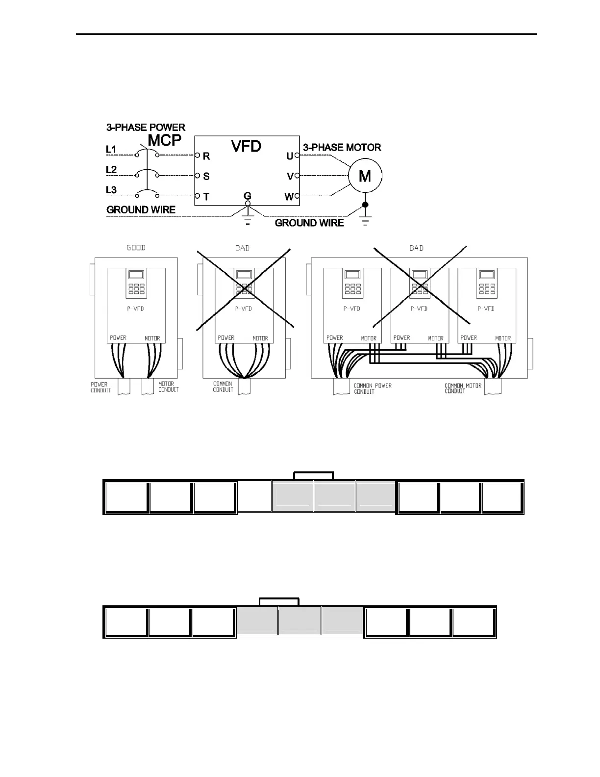 VFD can malfunction or be damaged if motor and power wires are in the same conduit!