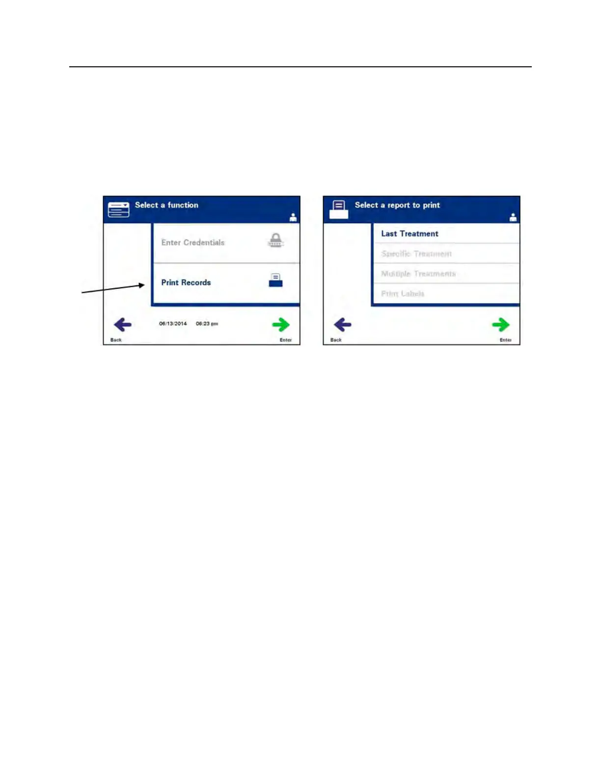 1. While in the ‘Select a report to print’ screen, use the arrow