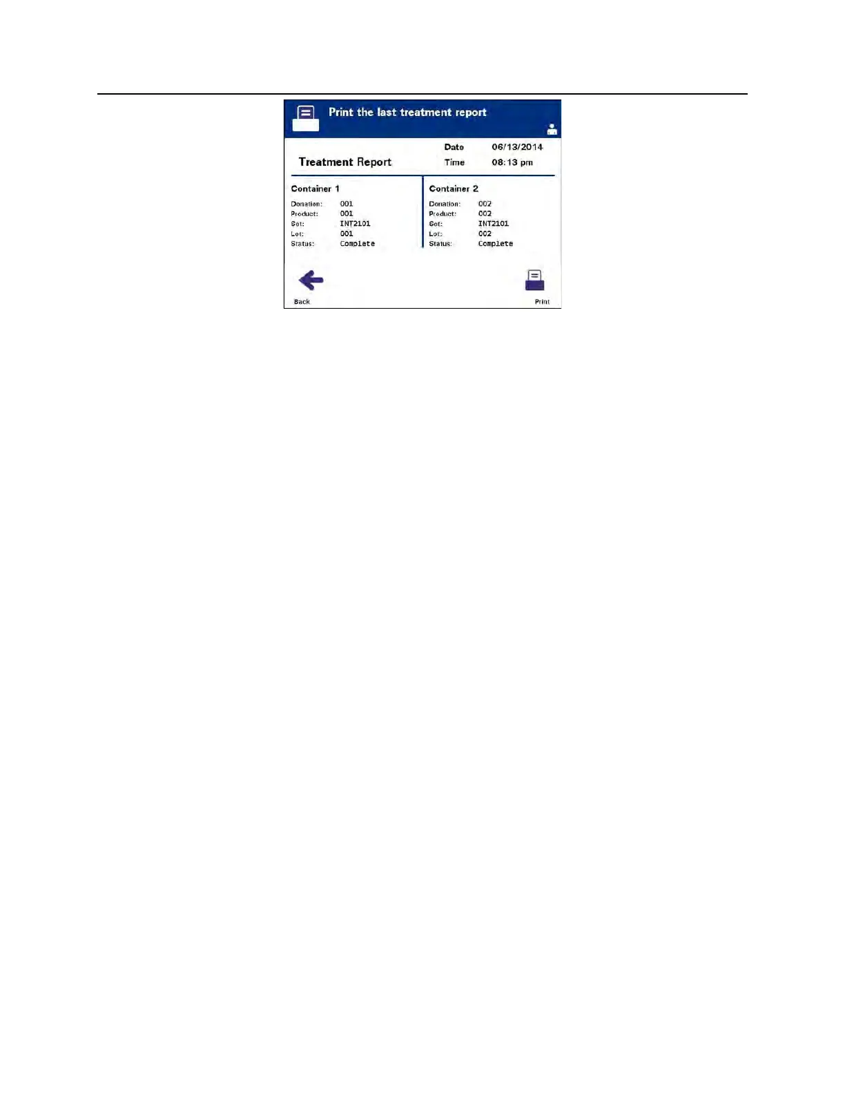 4. If the ‘Print the last treatment report’ screen is correct, press the