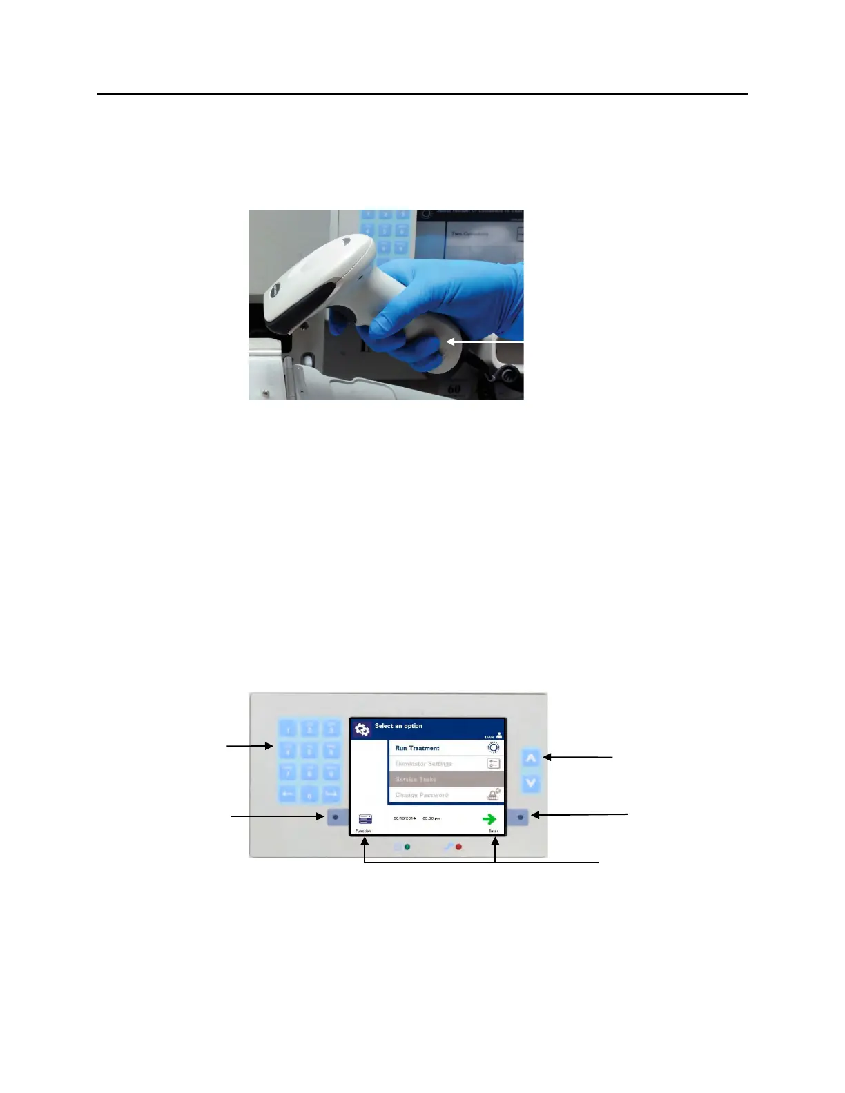 At the front of the illuminator is a barcode scanner. Barcodes are