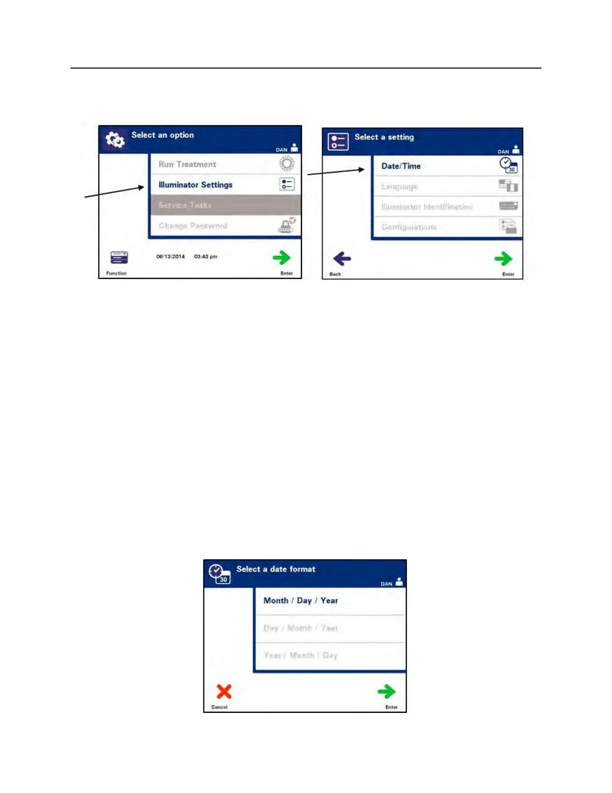 ‘Illuminator Settings’ option and press the ‘Enter’ button. The