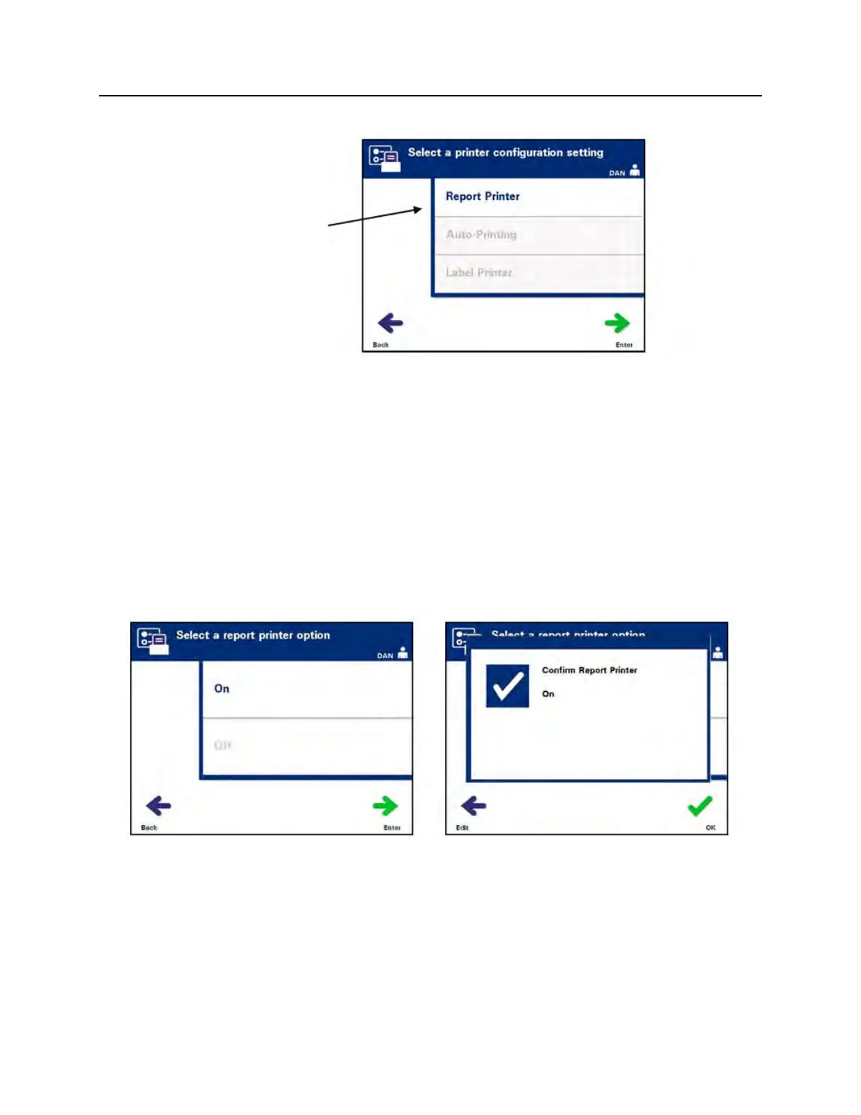 • Use the arrow buttons to choose the ‘Report Printer’ option.
