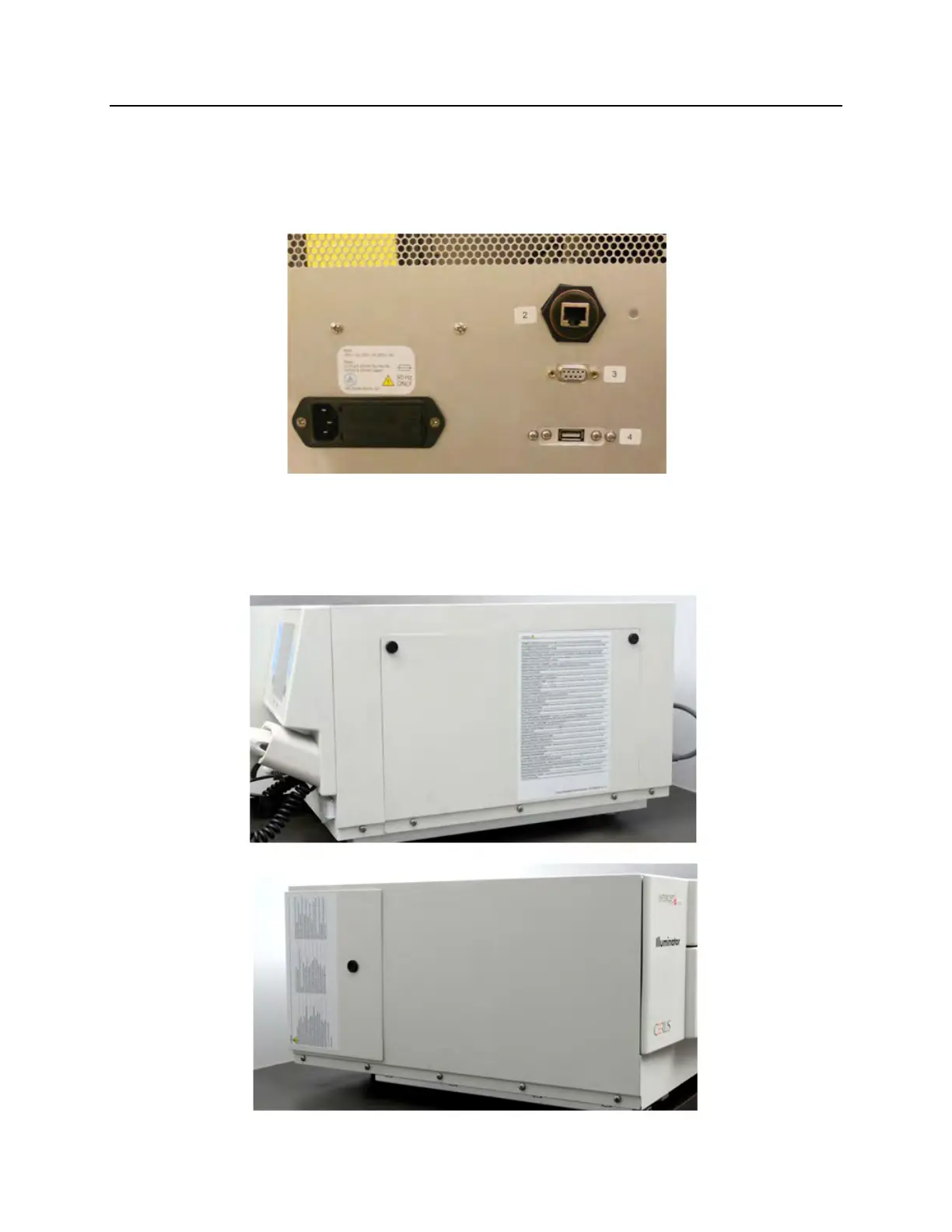 customer serviceable parts. Opening either panel of the illuminator
