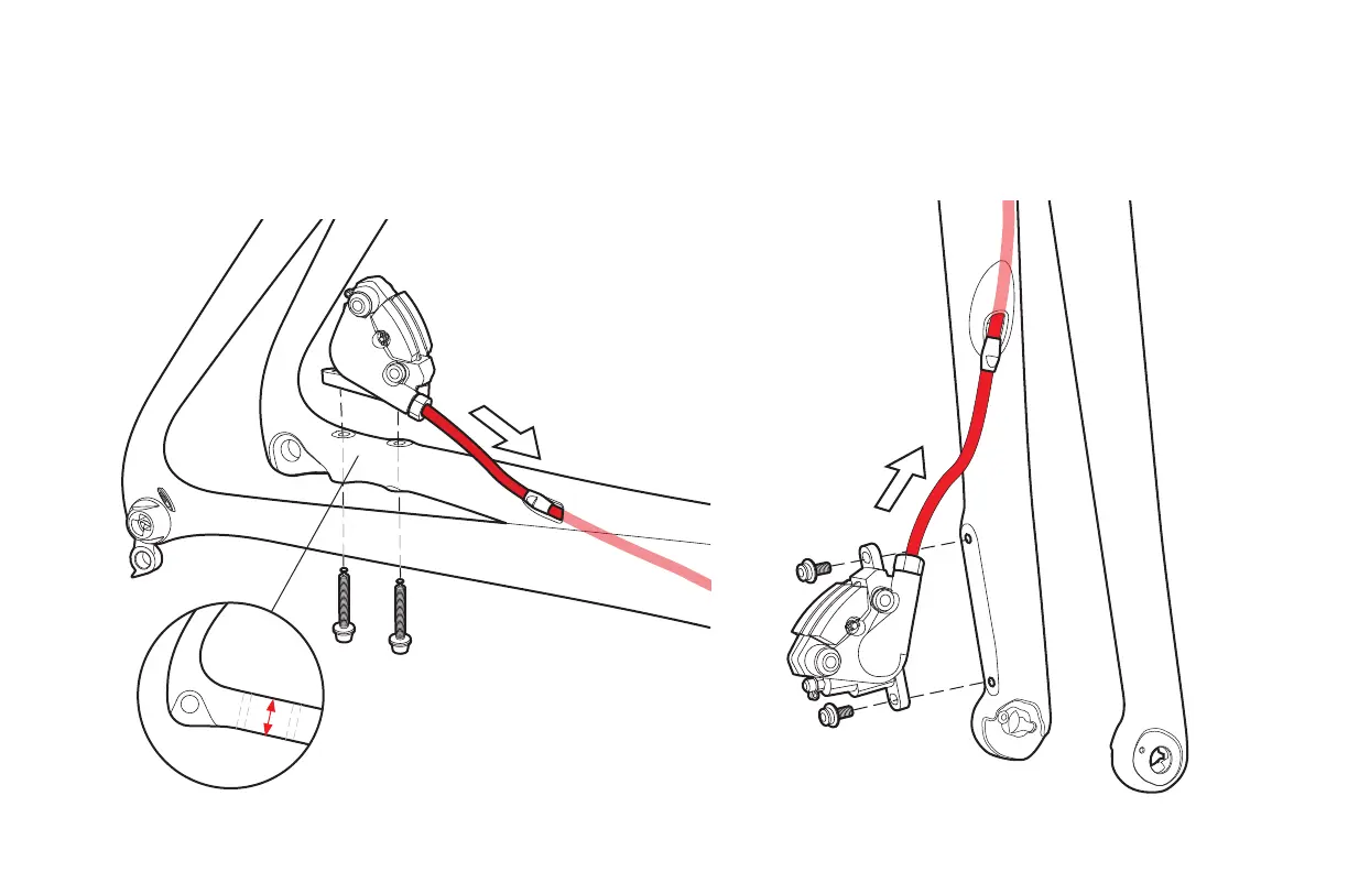 Route hydraulic brake hose or mechanical brake housing through the frame and fork with the Disc Hose