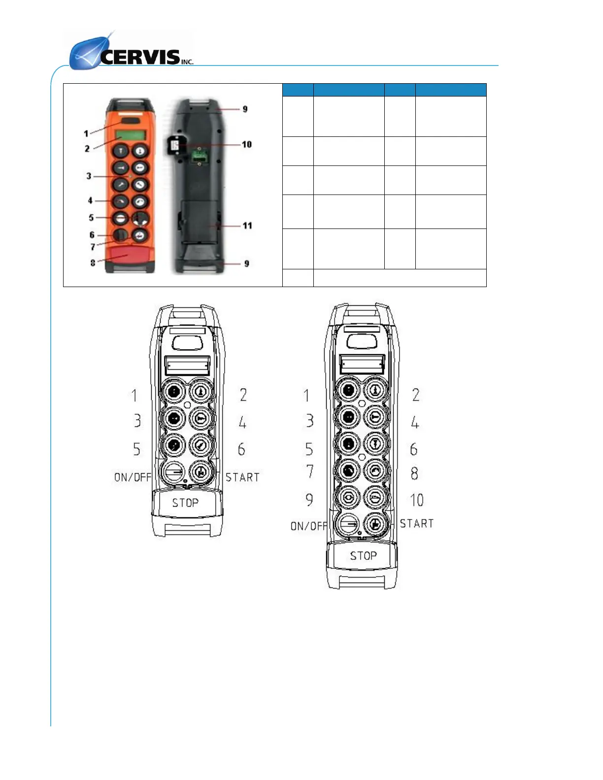 Cervis TM70 - Figure 11. TX Pushbutton;Switch Numbers;Names; Table 6. Transmitter Layout