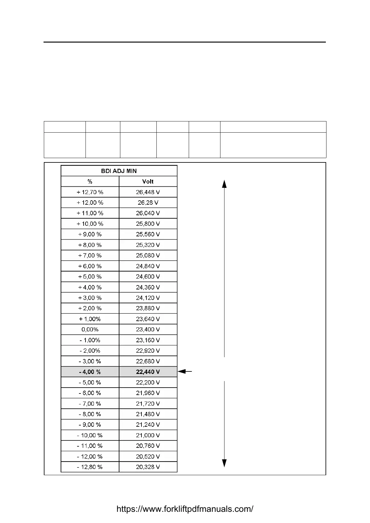 The parameter BDI ADJ MIN determines the voltage below which the battery indicator signals 0%