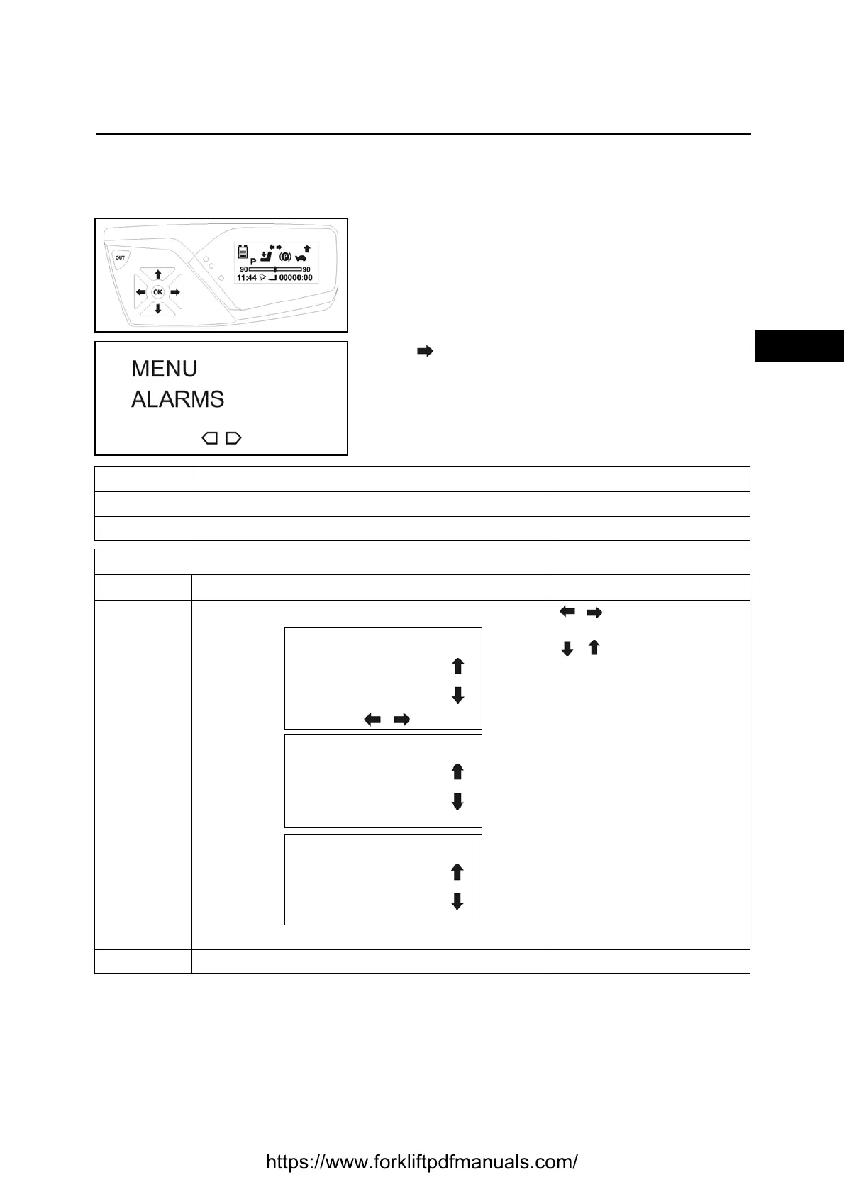 The alarms function is used to view the error codes present on the truck in real time and the last 20 errors