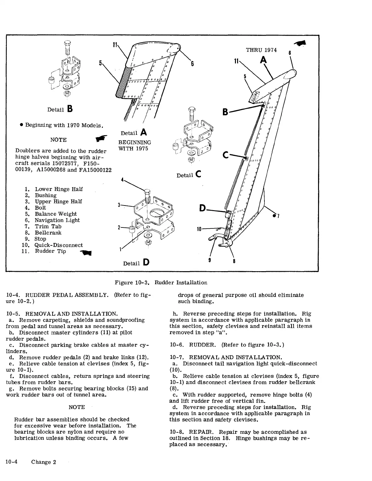 Cessna 150 STANDARD - Rudder Installation; Rudder Pedal Assembly