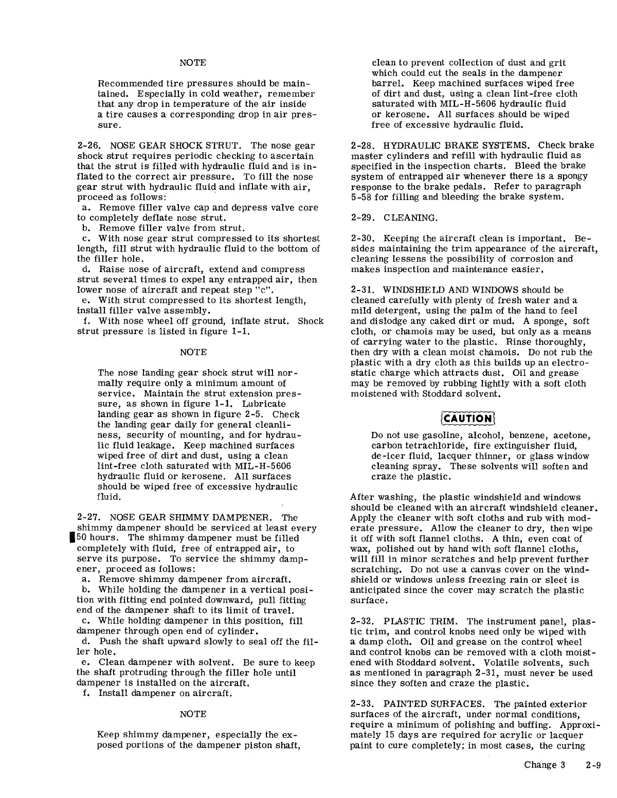 Cessna 150 STANDARD - Nose Gear Shock Strut; Nose Gear Shimmy Dampener; Hydraulic Brake Systems; Cleaning