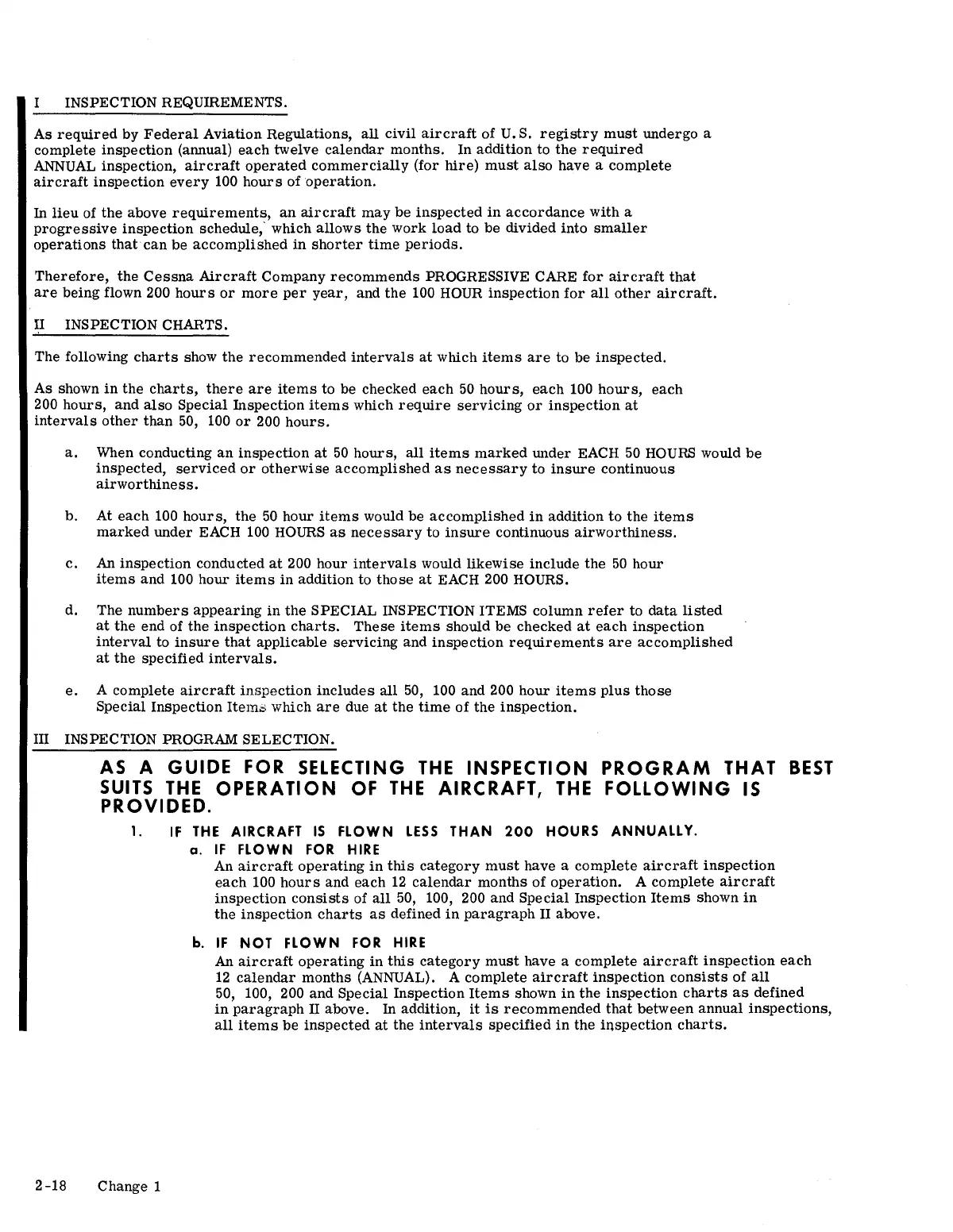 Cessna 150 STANDARD - Inspection Requirements; Inspection Charts; Inspection Program Selection