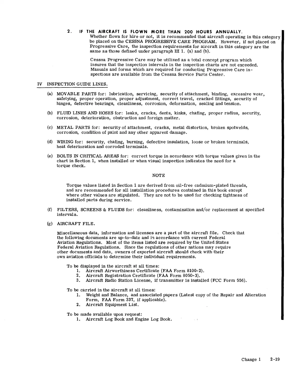 Cessna 150 STANDARD - Inspection Guide Lines