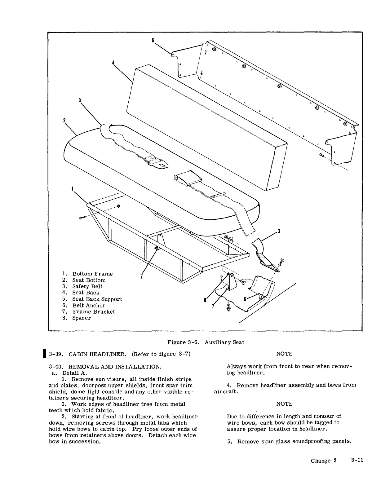 Cessna 150 STANDARD - Cabin Headliner Removal and Installation; Auxiliary Seat