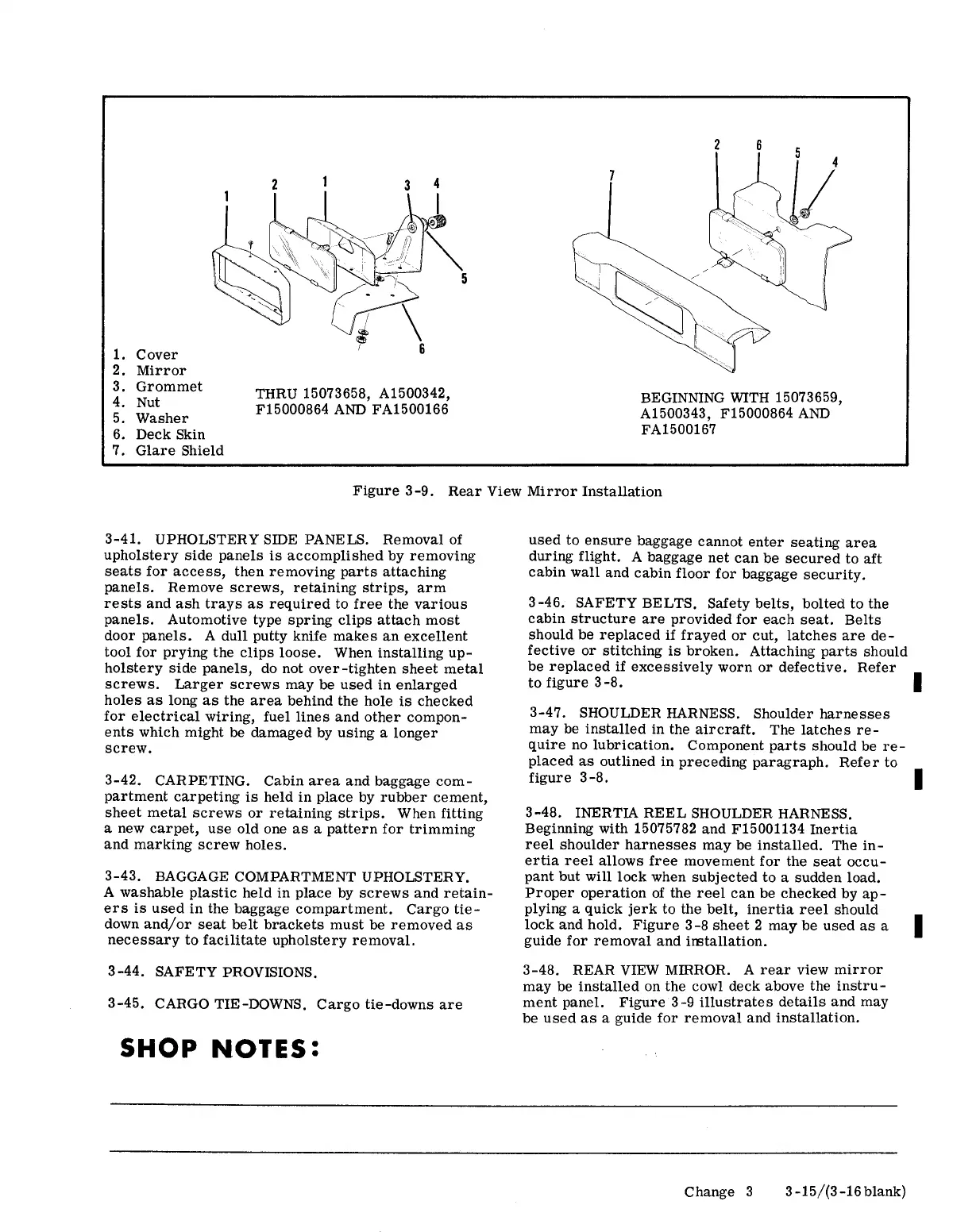 Cessna 150 STANDARD - Rear View Mirror Installation; Upholstery Side Panels; Carpeting; Baggage Compartment Upholstery
