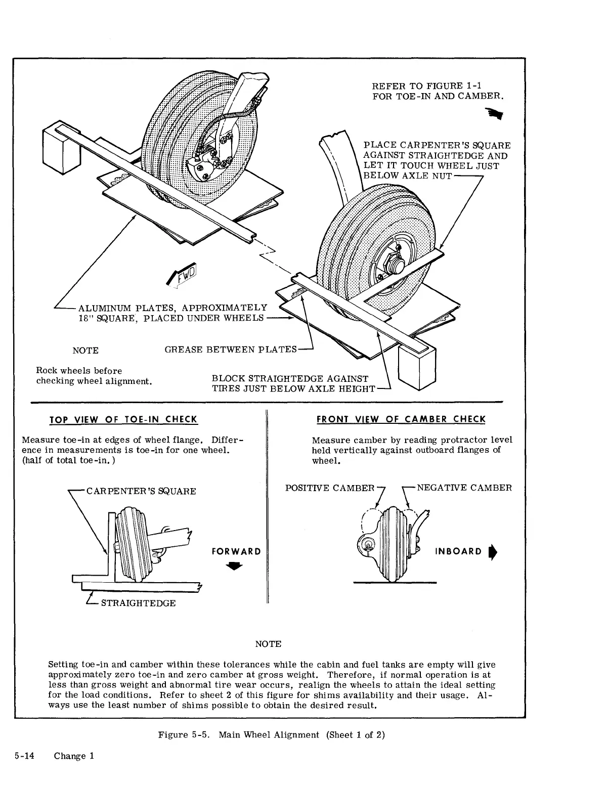 Cessna 150 STANDARD - Top View of Toe-In Check; Front View of Camber Check