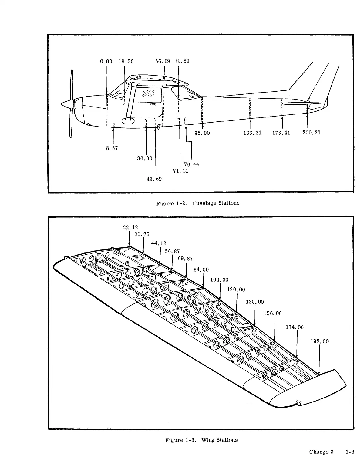 Cessna 150 STANDARD - Fuselage Stations; Wing Stations