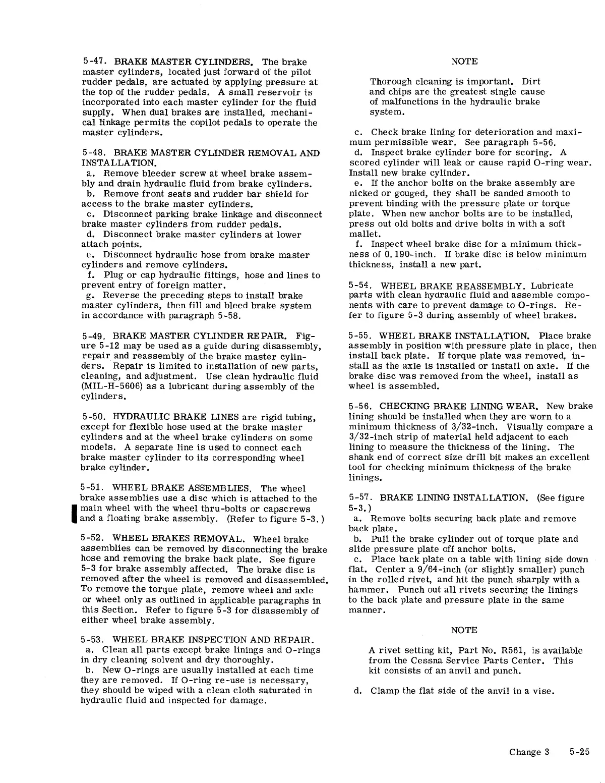 Cessna 150 STANDARD - Brake Master Cylinders; Brake Master Cylinders Removal and Installation; Brake Master Cylinder Repair; Hydraulic Brake Lines