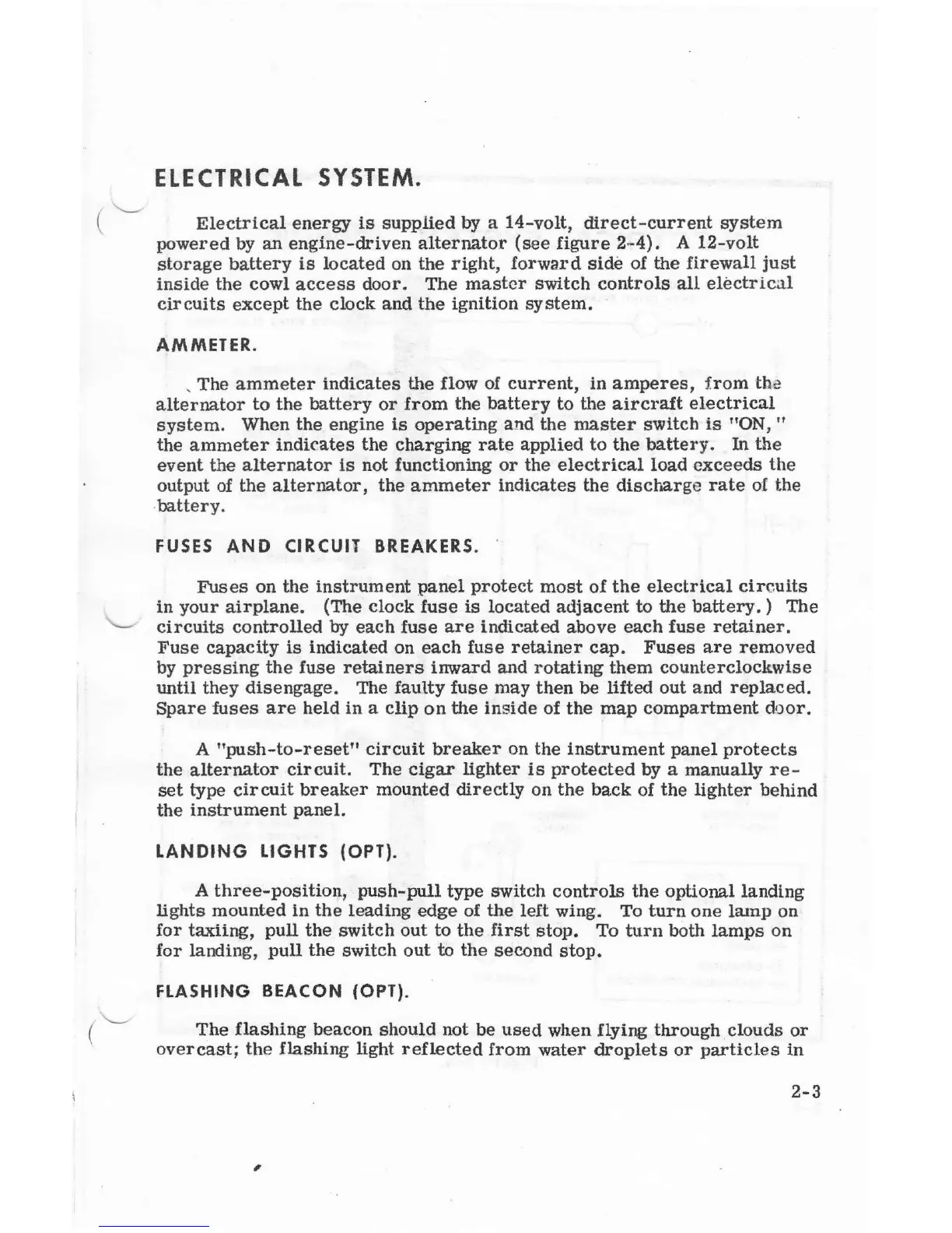 Cessna 150 - ELECTRICAL SYSTEM.; AMMETER.; FUSES AND CIRCUIT BREAKERS.; LANDING LIGHTS (OPT).
