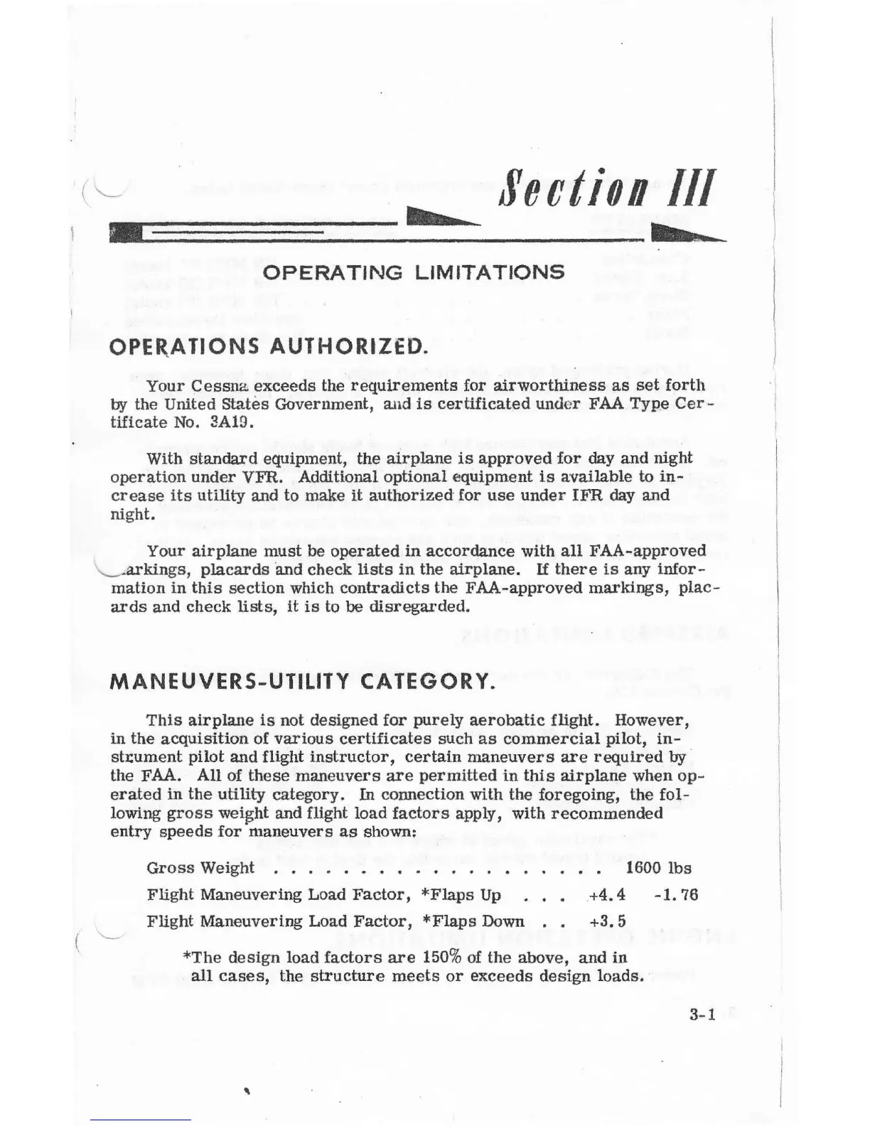 Cessna 150 - SECTION III OPERATING LIMITATIONS; OPERATIONS AUTHORIZED.; MANEUVERS-UTILITY CATEGORY.