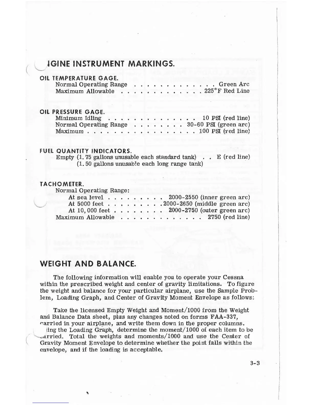 Cessna 150 - ENGINE INSTRUMENT MARKINGS.; WEIGHT AND BALANCE.