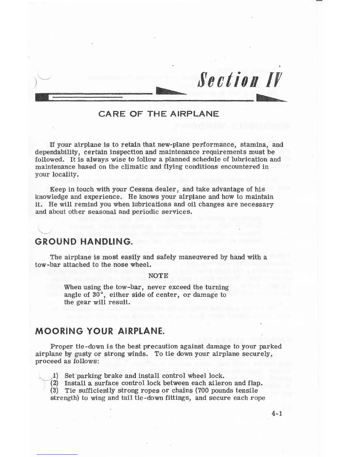 Cessna 150 - SECTION IV CARE OF THE AIRPLANE; GROUND HANDLING.; MOORING YOUR AIRPLANE.