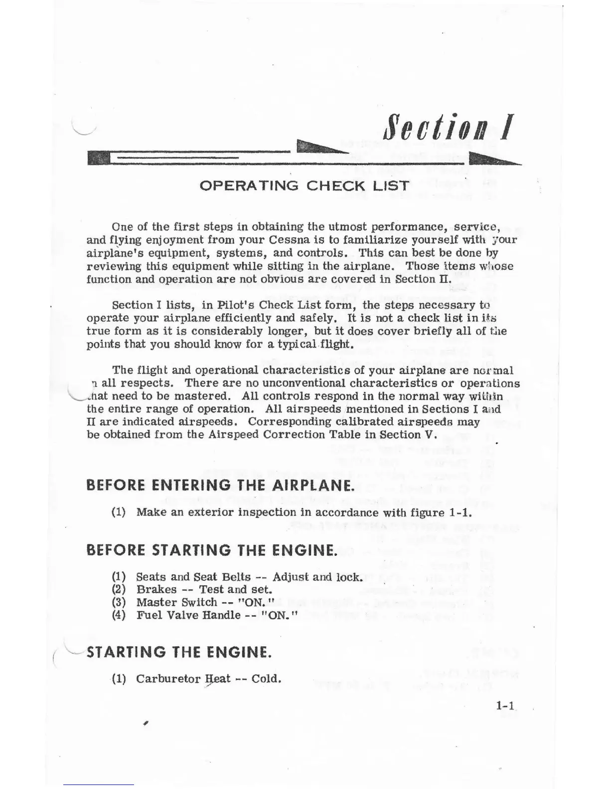 Cessna 150 - BEFORE ENTERING THE AIRPLANE.; BEFORE STARTING THE ENGINE.; STARTING THE ENGINE.