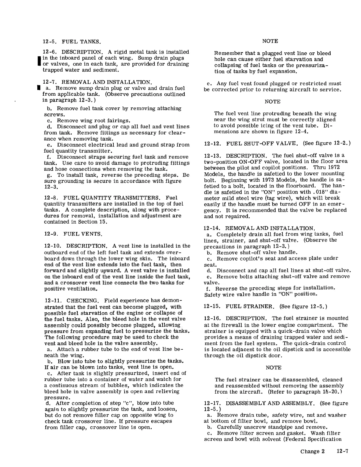 Cessna 150J - Fuel Quantity Transmitters; Fuel Vents; Fuel Shut-Off Valve; Fuel Strainer