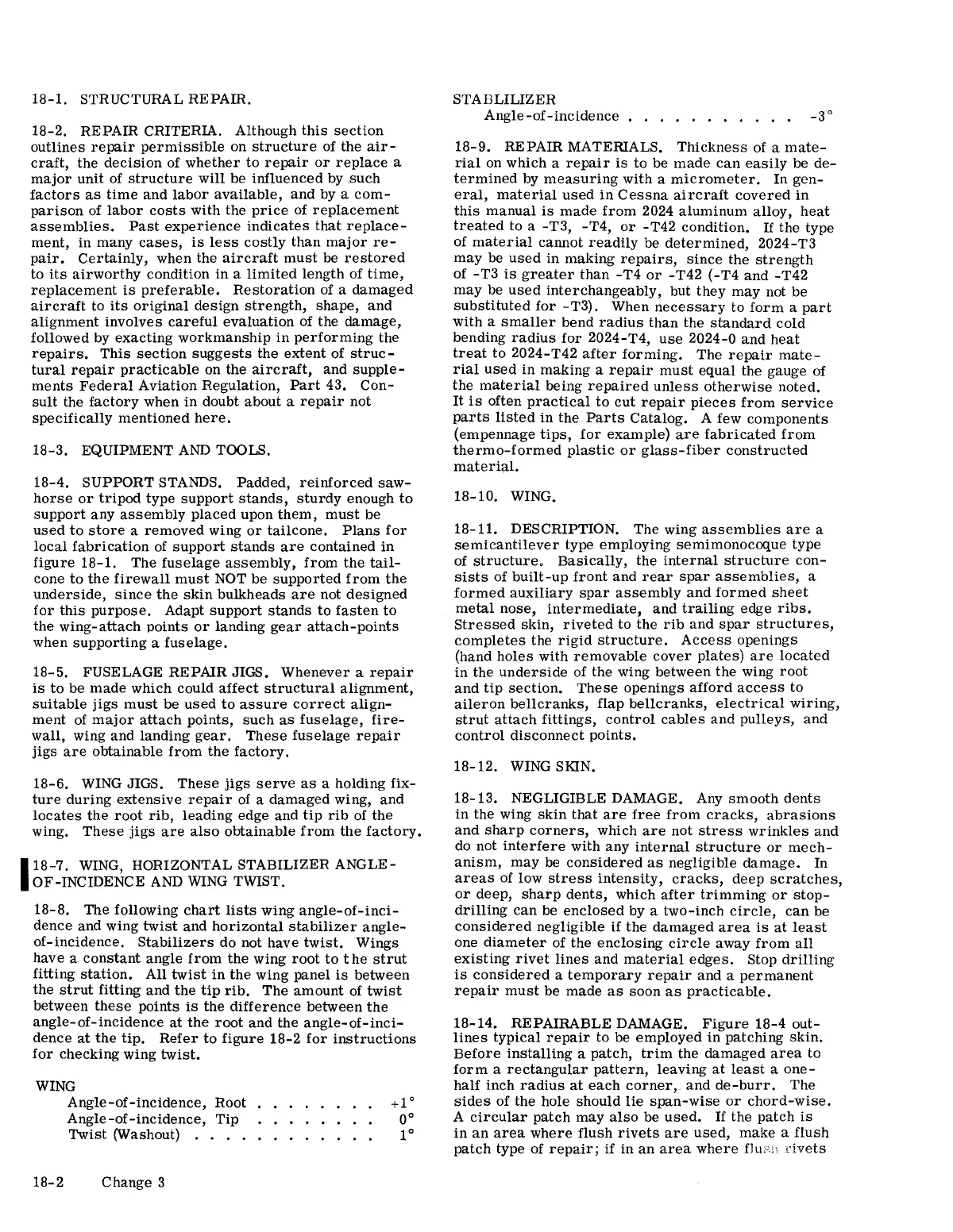 Cessna 150K - Wing, Horizontal Stabilizer Angle Of-Incidence and Wing Twist; Wing; Wing Skin