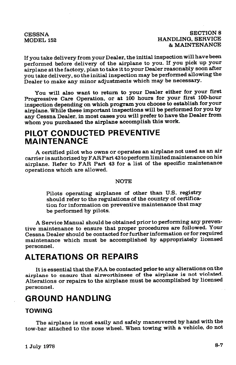 Cessna 152 - Ground Handling and Parking Procedures