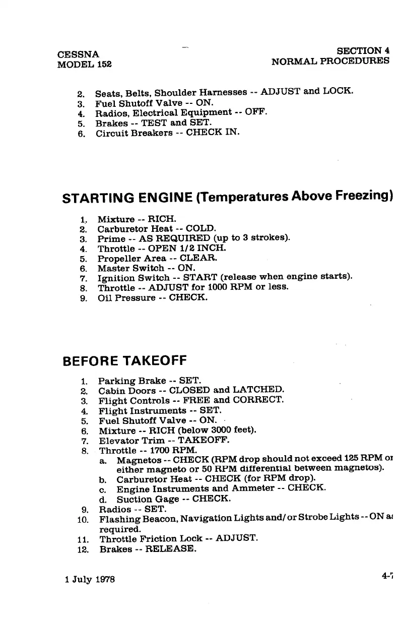 Cessna 152 - Engine Starting and Before Takeoff Procedures