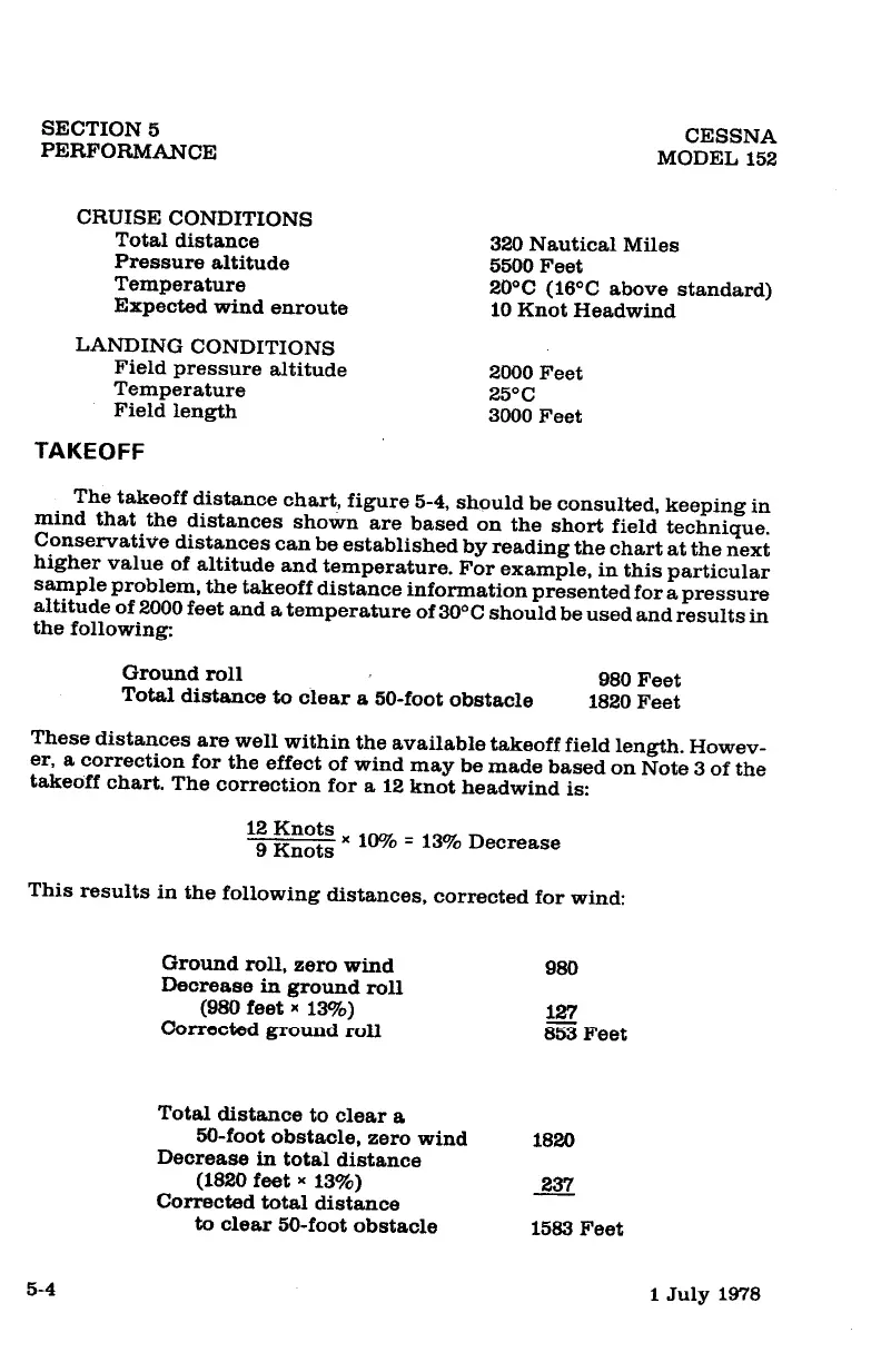Cessna 152 - Takeoff Distance Calculations