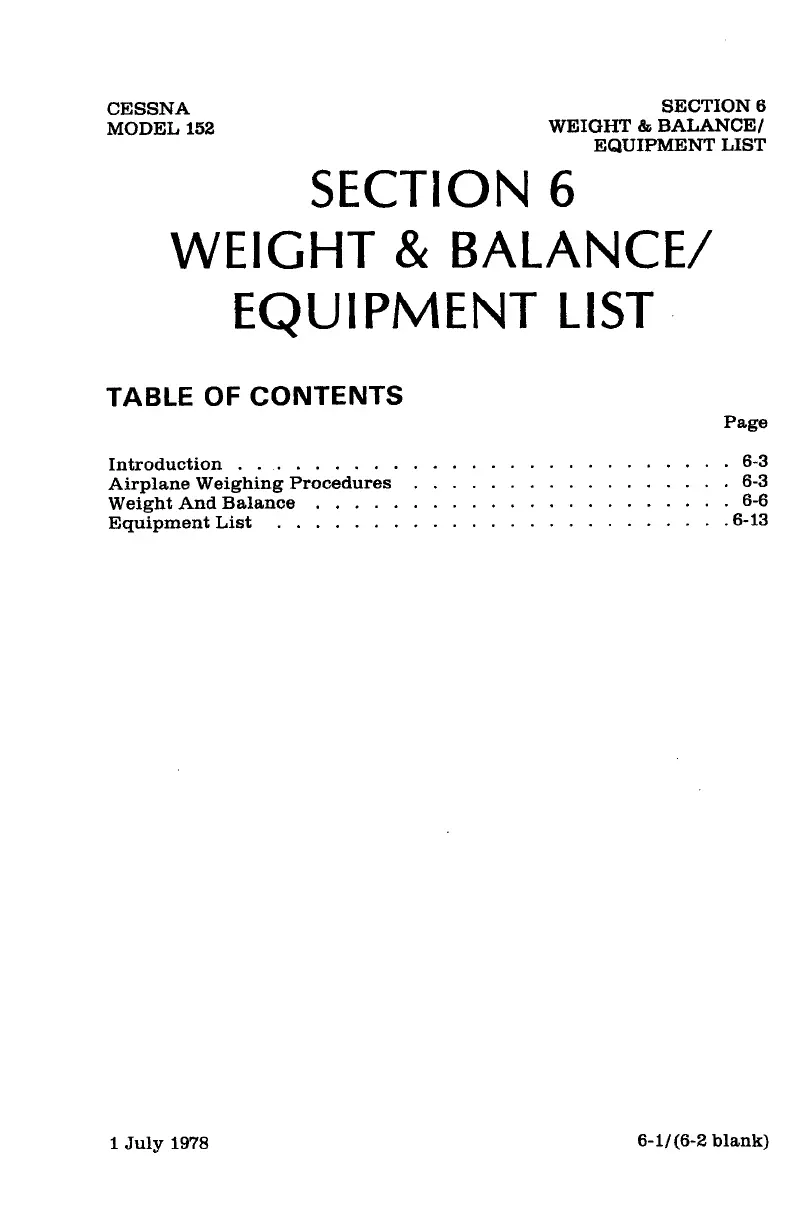 Cessna 152 - Section 6 Weight & Balance and Equipment List