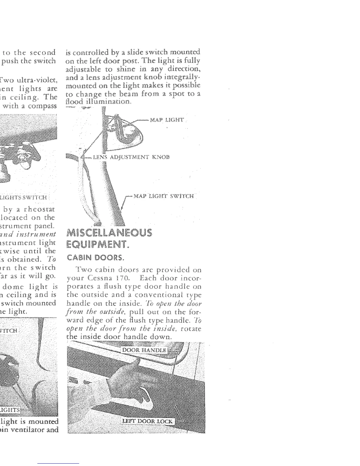 Cessna 170 52 - Miscellaneous Equipment; Cabin Doors; Dome Light; Map Light