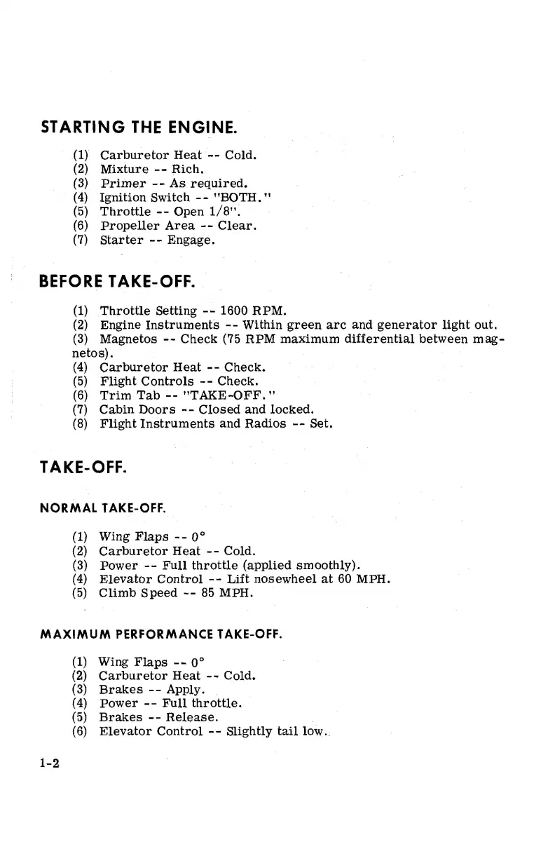 Cessna 172 1964 - Before Take-Off Checklist; Take-Off Procedures
