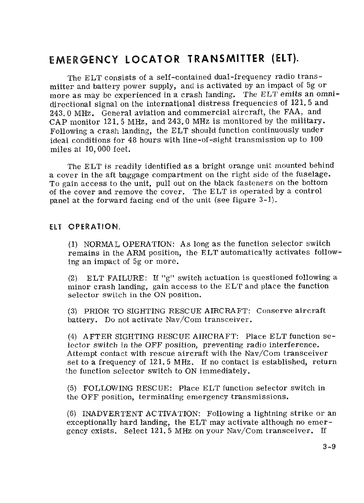 Cessna 172 - EMERGENCY LOCATIOR TRANSMITTER (ELT); ELT Operation