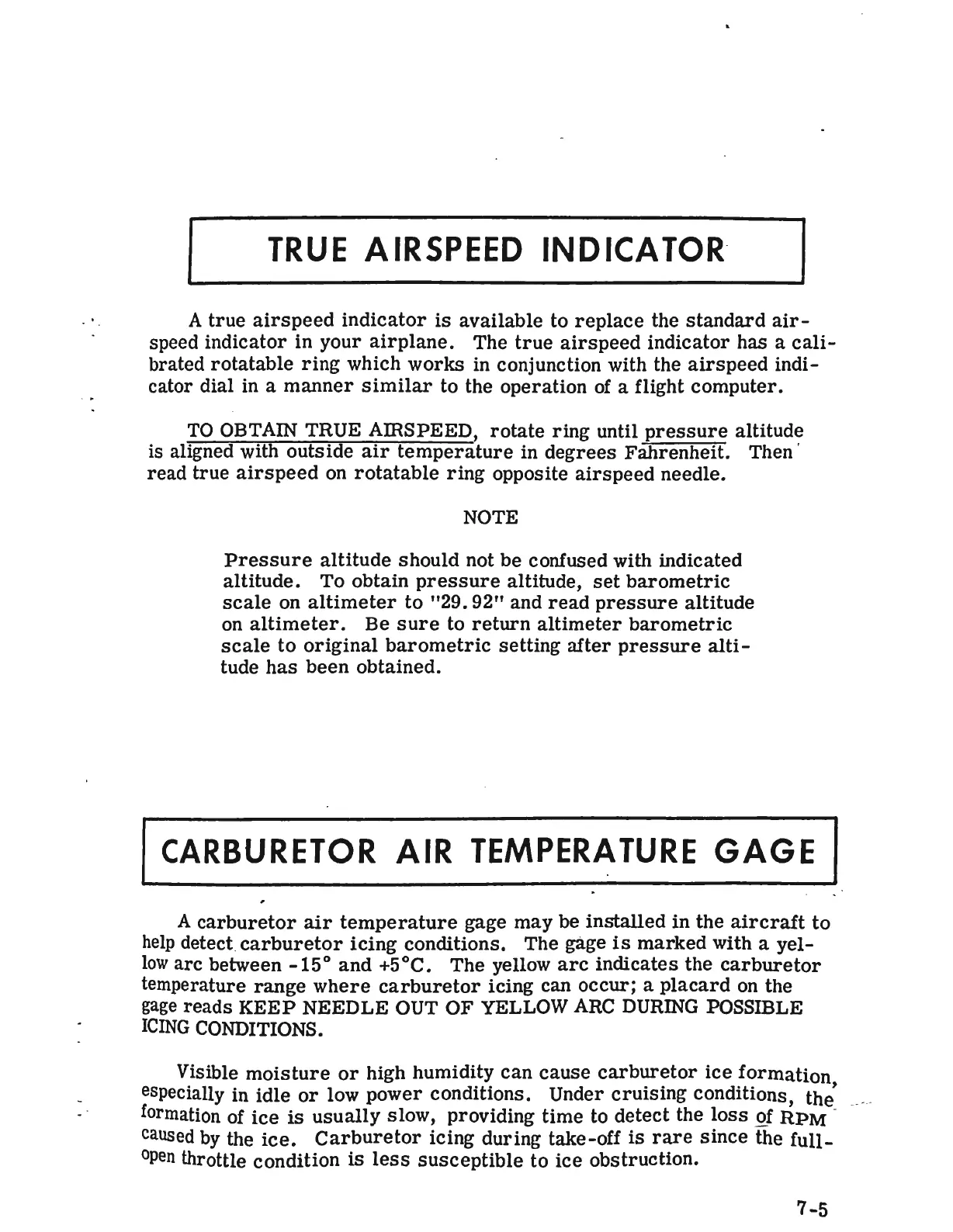 Cessna 172 - True Airspeed Indicator; Carburetor Air Temperature Gage