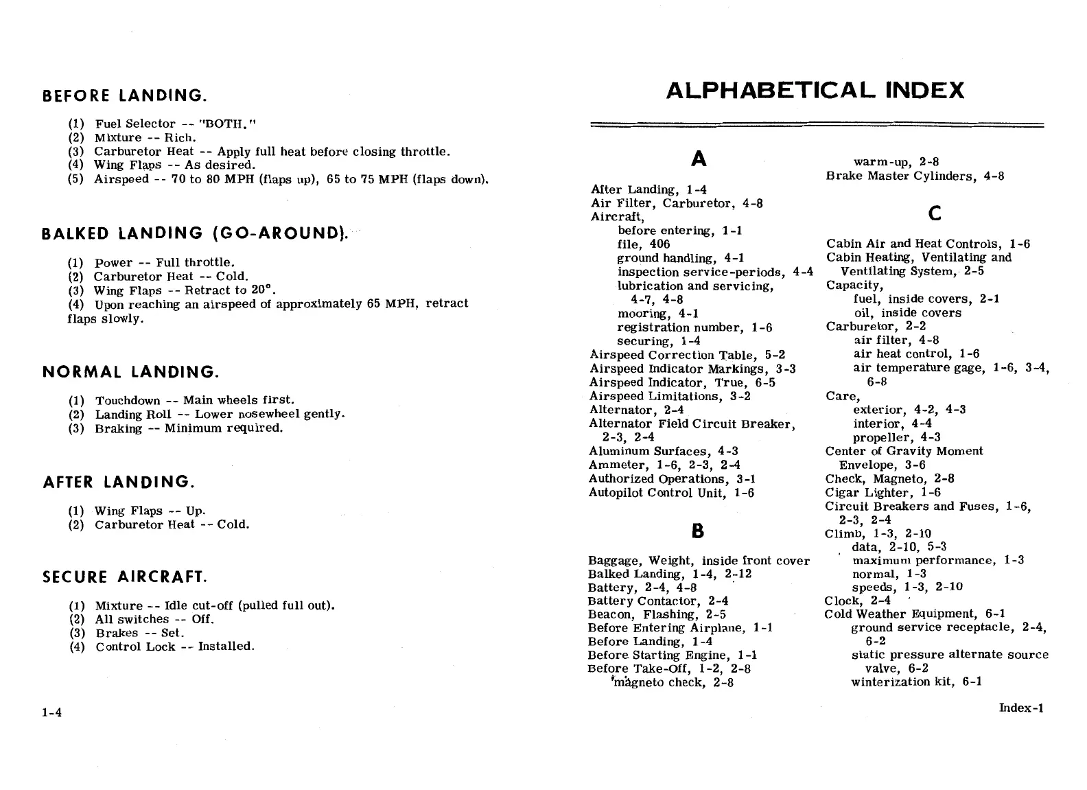 Cessna 172K - Before Landing Procedures; Normal Landing Procedures; After Landing Procedures; Securing the Aircraft