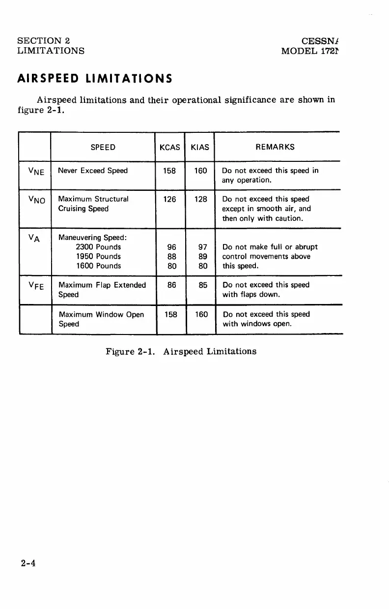 Cessna 172N - Airspeed Limitations and Markings