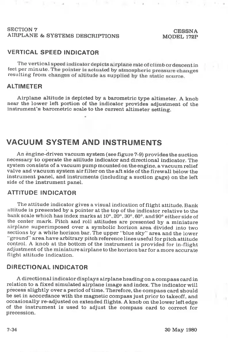 Cessna 172P - Vertícal Speed Indicator; Altimeter; Directional Indicator; Suction Gage