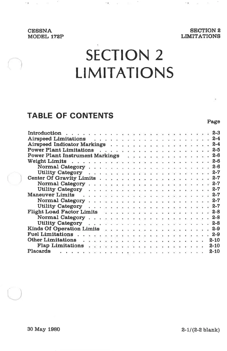 Cessna 172P - Limitations