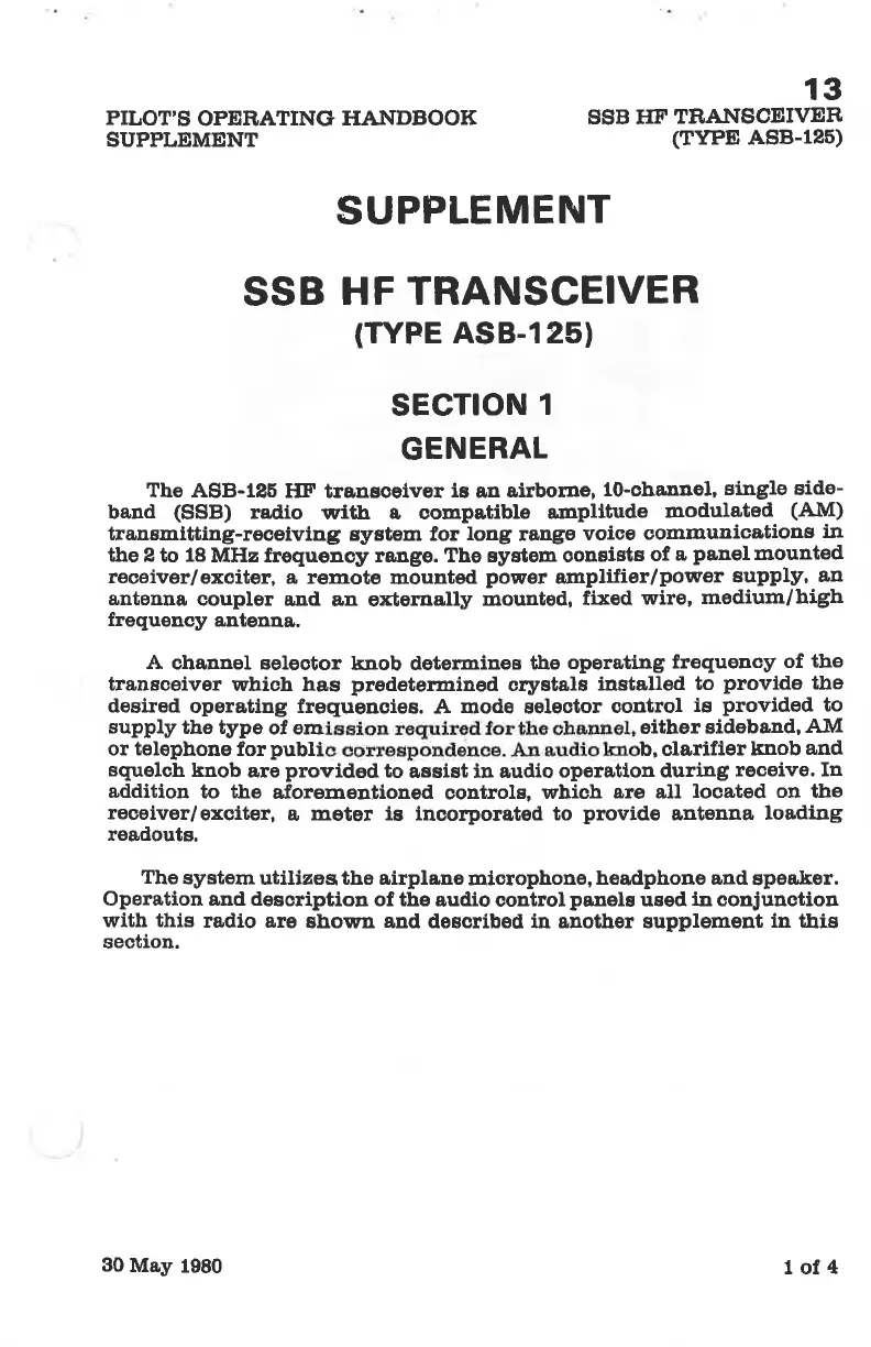 Cessna 172P - SSB HF TRANSCEIVER (TYPE ASB-125)