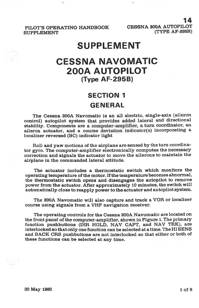 Cessna 172P - CESSNA 200 A AUTOPILOT (Type AF-295 B)