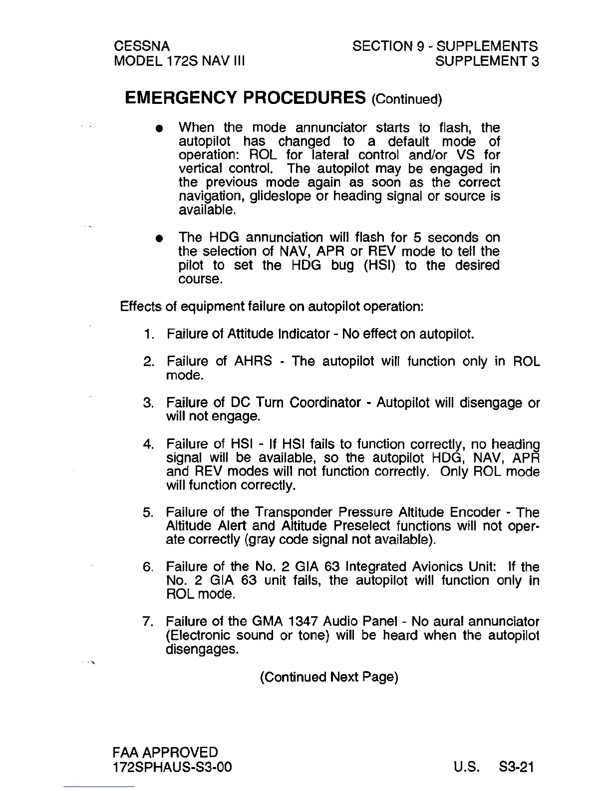 EMERGENCY PROCEDURES (Continued)