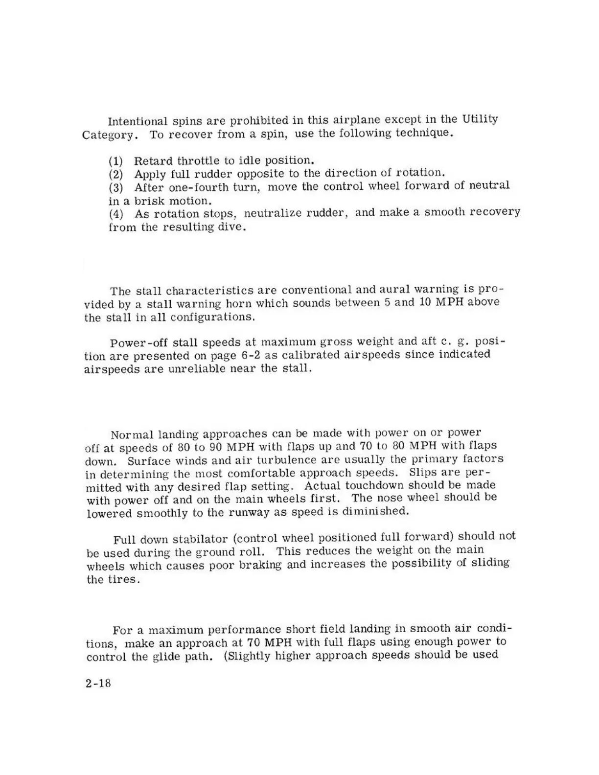 Cessna 177 - FLIGHT MANEUVERS AND EMERGENCY PROCEDURES; Spin Recovery Procedures; Stall Characteristics; Landing Procedures