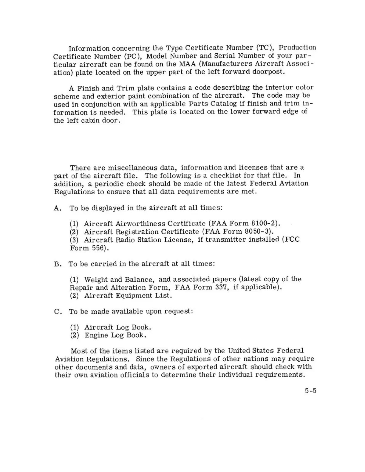 Cessna 177 - AIRCRAFT IDENTIFICATION AND DOCUMENTATION; MAA Plate; Finish and Trim Plate Information; Aircraft File Contents