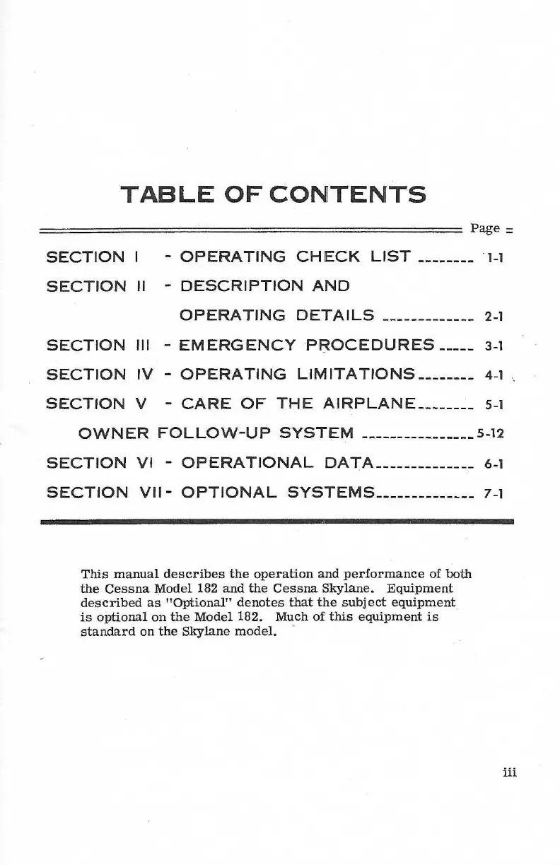 Cessna 182 1973 - Table of Contents