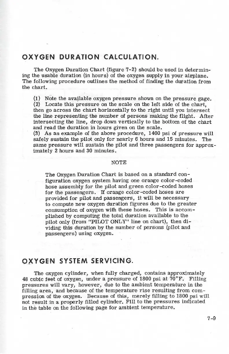 Cessna 182 1973 - Oxygen Duration Calculation; Oxygen System Servicing