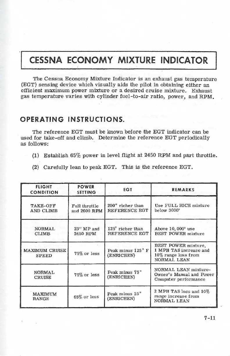 Cessna 182 1973 - Cessna Economy Mixture Indicator; Operating Instructions