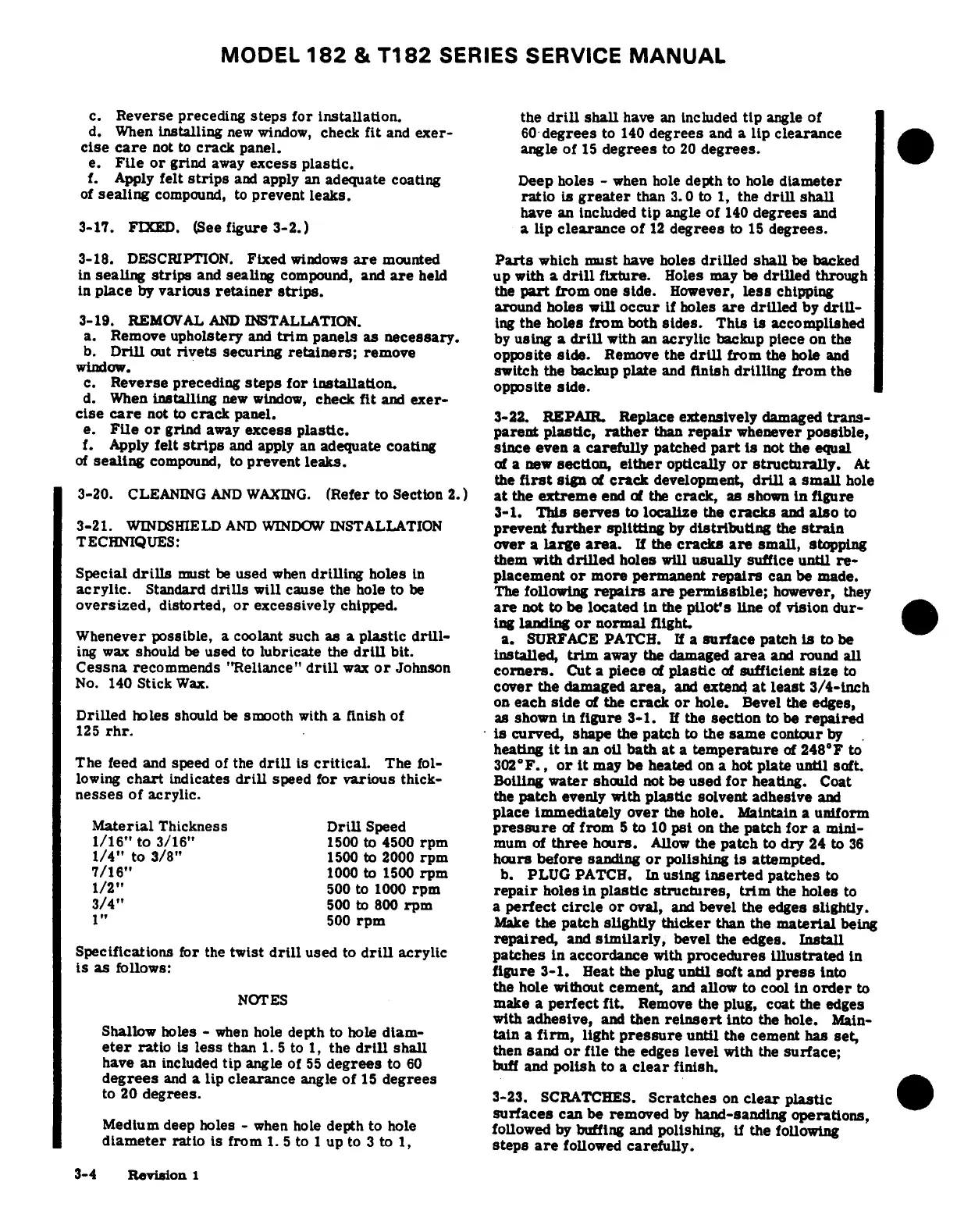 Cessna 182 1978 - Surface Patch; Windshield and Window Installation Techniques; Cleaning and Waxing; Fixed